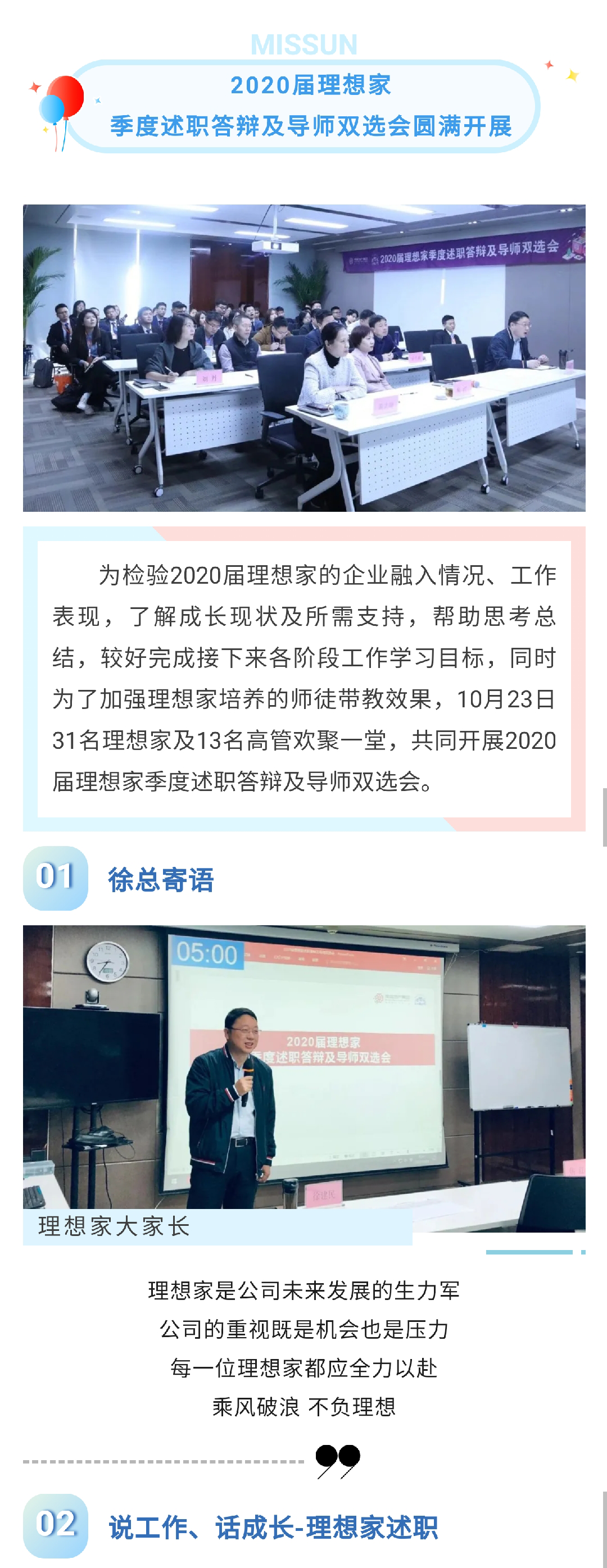 首頁 > 企業(yè)文化 > 團(tuán)隊(duì)建設(shè)總結(jié)提升 對標(biāo)成長 | 2020屆理想家季度述職答辯及導(dǎo)師雙選會(huì)圓滿開展