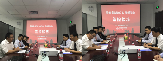 2017年8月10日下午,美盛•象湖100項目與河南美盛物業管理有限公司鄭州分公司正式簽訂戰略合作協議,共同推動全方位深入合作事宜。
