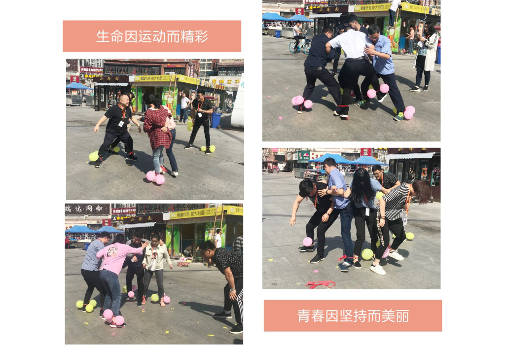 本次趣味運動會漯河新天地全員積極參與。運動會中共設(shè)置兩個比賽項目,團隊綁腿跑及雙人踩氣球,兩個項目既鍛煉了大家的動腦能力與協(xié)作能力,又提高了大家在工作中團結(jié)合作的精神。