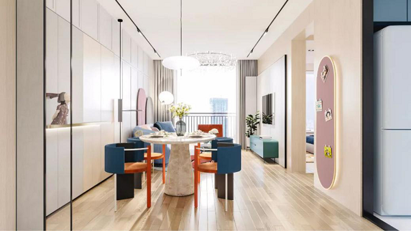 以現代人文的方式,交織出風華、美和韻律,將它們恰如其分地安置在生活空間里。在建面約138㎡四室兩廳兩衛的戶型里,整個空間低調而雅致,不失奢華美感。270度的觀景陽臺,讓四季之景相伴每一個平凡日常。