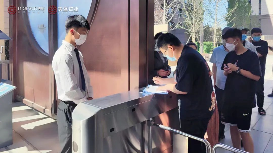 同時,為了保障每一位美盛業主的安全,美盛集團旗下各項目物業秩序部同事,同樣堅守在平凡崗位之上。進入小區所有人員均需佩戴口罩,查看健康碼與行程碼,測量體溫,確保所有進入小區的人員和車輛都在管控范圍內,做好門崗陣地第一道防控。