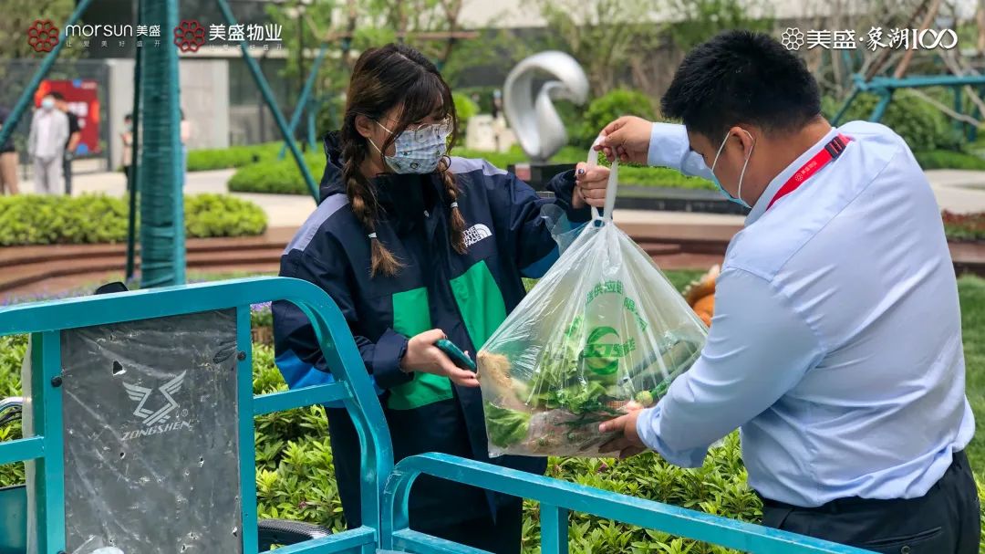 柴米油鹽樣樣都不能少的日子,在疫情下受到極大的影響。封閉式管理期間,業主們日常買菜極不方便。2022年5月7日,美盛物業協調各方資源、自掏腰包,為業主們采購來蔬菜禮包、防疫禮包,并送至每一位業主的手中。
