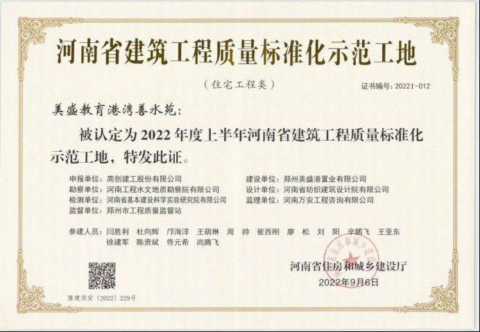 2022年4月,美盛金水印工藝博物館、實景地庫品質(zhì)呈現(xiàn);全年實現(xiàn)7棟樓封頂,榮獲河南省建筑工程質(zhì)量標(biāo)準(zhǔn)化示范工地