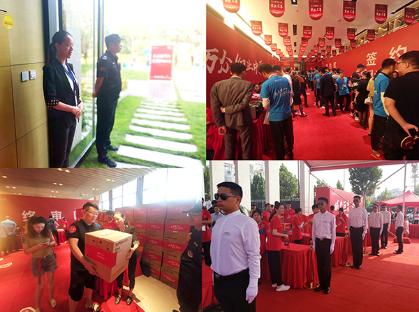 “您好!請問您是來參加選房活動的嗎?”當客戶車輛緩緩駛入時,首先會迎來入口禮賓崗的行禮致敬與親切問候。在引導車輛行駛方向的同時,通過對講系統通報人數特征和車牌信息,為后續崗位的服務接續做好充足的準備。停車場內車場崗秩序隊員接到禮賓崗信息,由崗位小跑入停車場,用標準姿勢引導車輛停放。