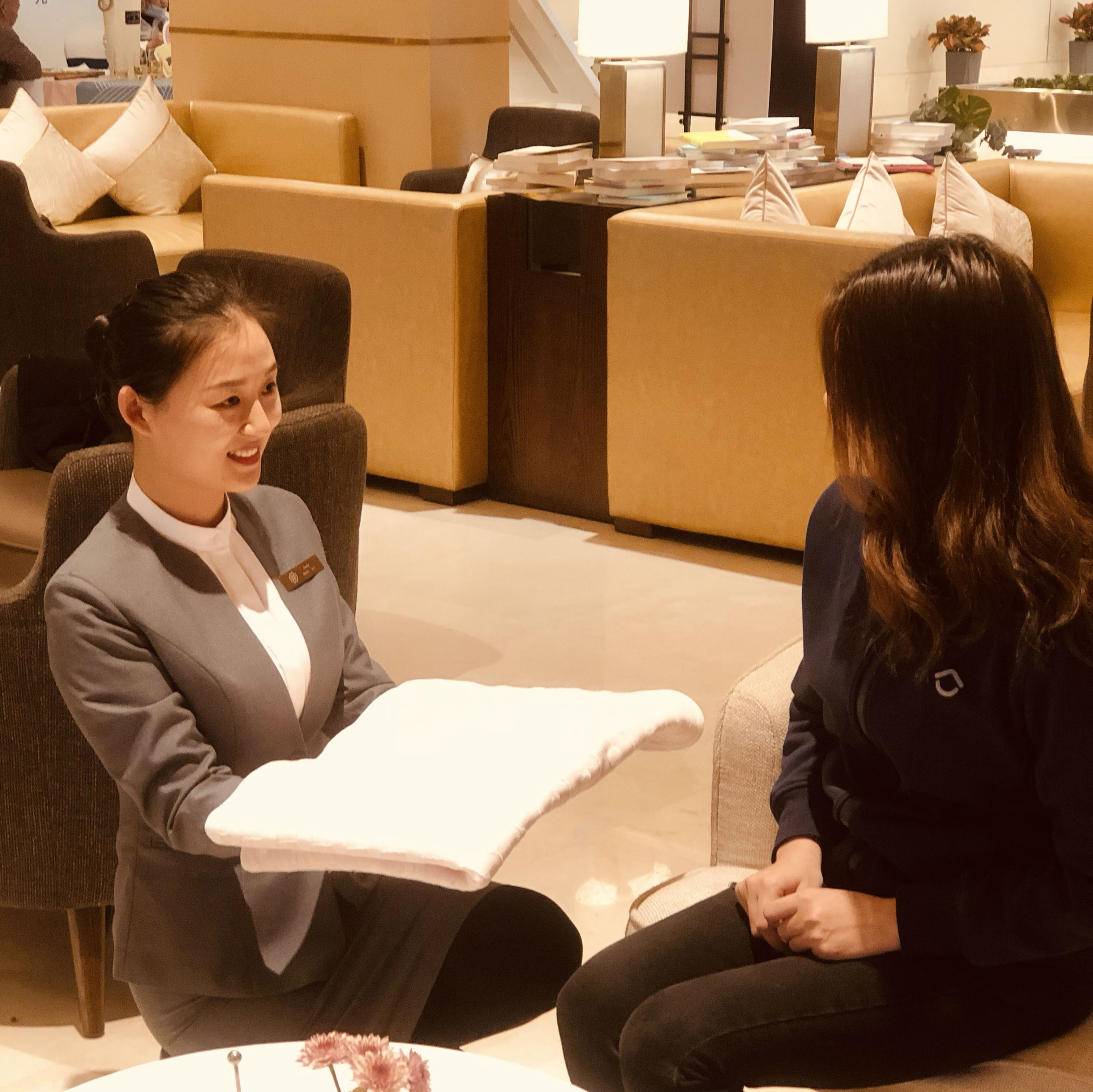 一次客服人員給客戶遞送飲品時,發(fā)現(xiàn)一位女士捂著肚子,聲音低沉,習(xí)慣性的詢問了幾句,得知該女士身體有些不適,于是我們的客服小姐姐立刻給客戶沖了一杯暖心紅糖姜茶,并為客戶披上了搭毯,女士非常感動,不停的贊美我們客服小姐姐心細。
